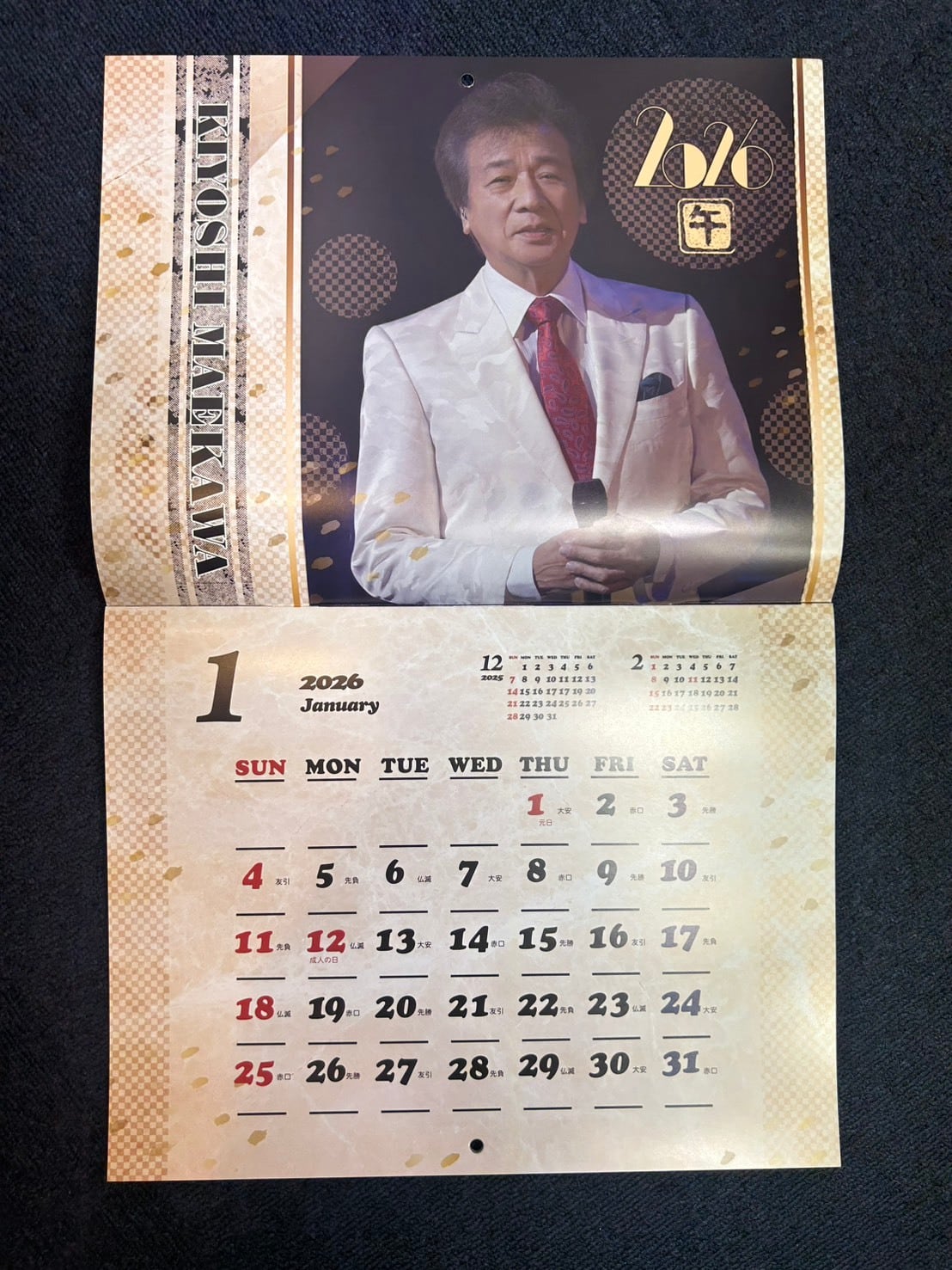 2026年も前川清と一緒に楽しい1年に☆ 今回も色々な前川さんの表情が見られる、新しい写真もたくさん使用しています。 2026年1月~12月+おまけページ付き リビングに、寝室に、お手洗いに、 新しい年の皆様の日常を彩る一つとして、 このカレンダーをご活用いただければ幸いです♪♪ <サイズ> 縦25.5cm × 横33cm